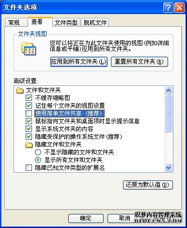 注意:如果你的系统是XP,请先点“工具”----“文件夹选项”----“查看”-----去掉“使用简单文件共享”前的勾,确定后,文件夹“属性”对话框中才会有“安全性”这一个选项卡。
